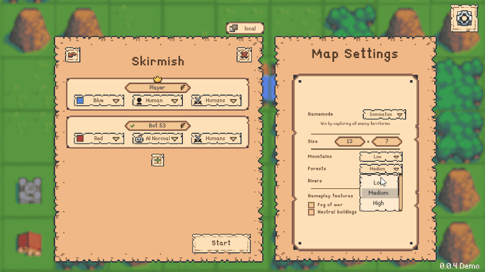Hey Tile-tacticians! Quick work-in-progress update. While doing some under-the-hood refactoring of our spaghetti code, my girlfriend has been working on improving our UI. 1) Map settings for skirmish:...